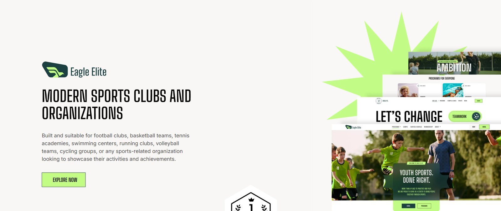 Designed for football clubs, basketball teams, tennis academies, swimming centers, running clubs, volleyball teams, cycling groups, and sports organizations to showcase activities and achievements.